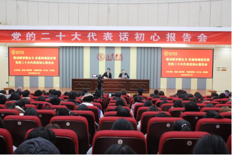 她围绕大会的基本情况,过去五年的工作和新时代十年的伟大变革;开辟马克思主义中国化时代化新境界;新时代新征程中国共产党的使命任务;加快构建新发展格局,着力推动高质量发展;实施科教兴国战略,强化现代化建设人才支撑;发展全过程人民民主,保障人民当家作主;坚持全面依法治国,推进法治中国建设;推进文化自信自强,铸就社会主义文化新辉煌;增进民生福祉,提高人民生活品质……等内容进行了深入解读。她还结合自身成长、奋斗和创业经历畅谈了自身体会。