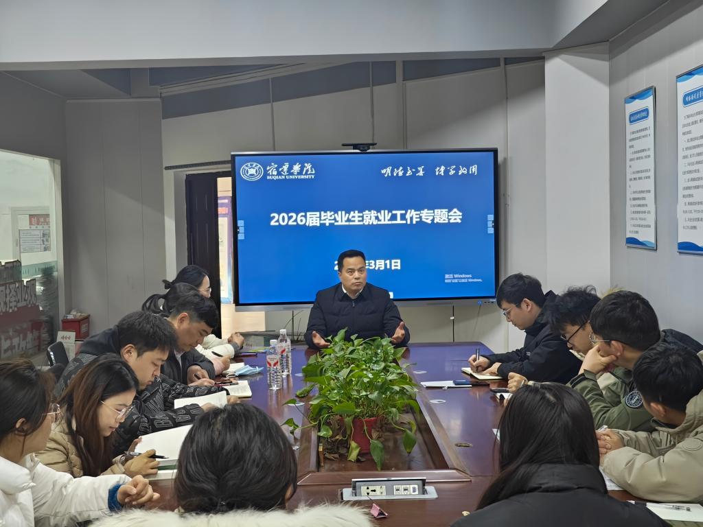为进一步推进毕业生春季促就业攻坚行动,促进我校2026届毕业生高质量充分就业,3月1日下午,我校召开2026届毕业生就业工作专题会议,对春季促就业攻坚行动工作进行再部署、再动员、再发力。学工处处长、招生就业办公室主任毛广出席会议并讲话。