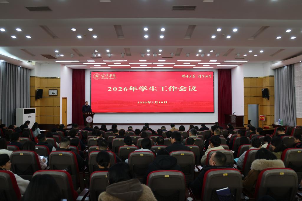 为进一步完善“三全育人”工作格局,持续深化“大思政”“大学工”工作理念,全面提升学生工作质量与合力,3月10日上午,我校召开2026年学生工作会议。校党委副书记侍旭出席会议并作部署讲话,副校长许立春主持会议。各职能部门负责人、各二级学院相关领导,校企及家委会代表、全体辅导员参会。