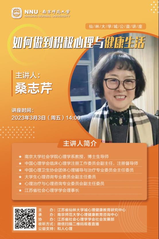 2023年3月3日14:00 《如何做到积极心理与健康生活》(桑志芹 教授)