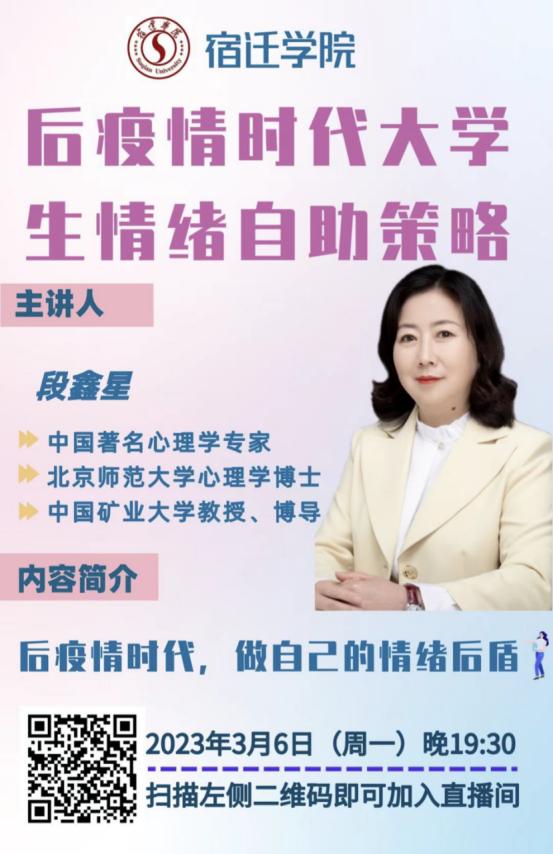 2023年3月6日晚19:30 《后疫情时代大学生情绪自助策略》(段鑫星 教授)